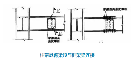 ②工字形截面柱和箱形截面柱通過(guò)帶懸臂梁段與框架梁連接時(shí),構(gòu)造措施有兩種: