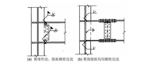 (1)梁與柱的鉸接連接分為:僅梁腹板連接、僅梁翼緣連接: