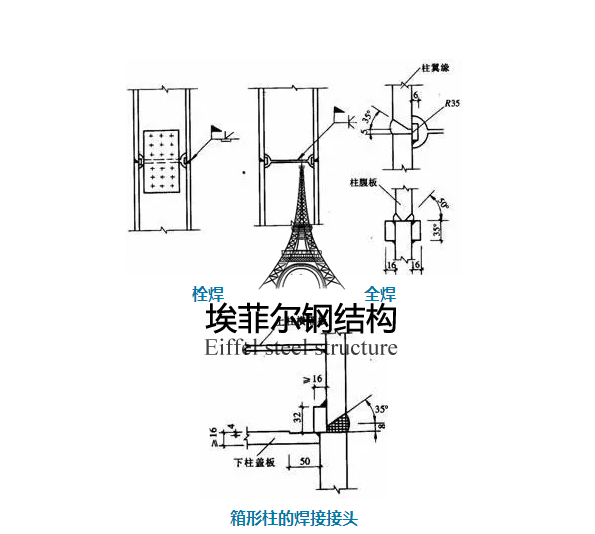 工字形截面柱的拼接接頭,翼緣一般為全熔透坡口焊接,腹板可為高強(qiáng)度螺栓連接,當(dāng)柱腹板采用焊接時(shí),上柱腹板開K形坡口,要求焊透。箱形截面柱的拼接接頭應(yīng)全部采用焊接,為便于全截面熔透。