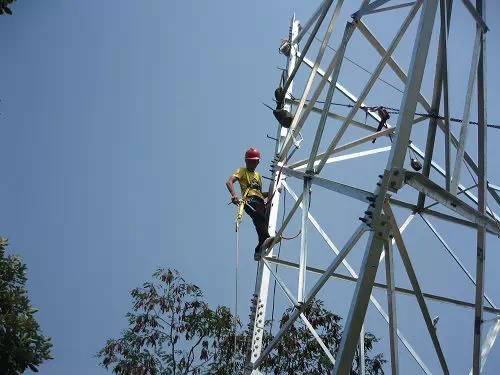 現(xiàn)場(chǎng)登高應(yīng)借助建筑結(jié)構(gòu)或腳手架上的登高設(shè)施,也可采用載人的垂直運(yùn)輸設(shè)備,進(jìn)行攀登作業(yè)時(shí),也可使用梯子或采用其他攀登設(shè)施。柱、梁和構(gòu)件吊裝所需的直爬梯及其他登高用的拉攀件,應(yīng)在構(gòu)件施工圖或說(shuō)明內(nèi)做出規(guī)定,攀登的用具在結(jié)構(gòu)構(gòu)造上,必須牢固可靠。梯腳底部應(yīng)墊實(shí),不得墊高使用,梯子上端應(yīng)有固定措施。鋼結(jié)構(gòu)件及網(wǎng)架構(gòu)件安裝登高時(shí),應(yīng)使用鋼掛梯或設(shè)置在鋼柱上的爬梯。登高安裝鋼梁時(shí),應(yīng)視鋼染高度,在兩端設(shè)置掛梯或設(shè)鋼管腳手架。在鋼屋架上下弦登高操縱時(shí),對(duì)于三角形屋架應(yīng)在屋脊處,梯形屋架應(yīng)在兩端,設(shè)置攀登時(shí)上下的梯架。