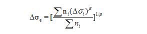 2、對變幅(應力循環(huán)內的應力幅隨機變化)疲勞,若能預測結構在使用壽命期間各種荷載的頻率分布、應力幅水平以及頻次分布總和所構成的設計應力譜,則可將其折算為等效常幅疲勞,按下式進行計算: