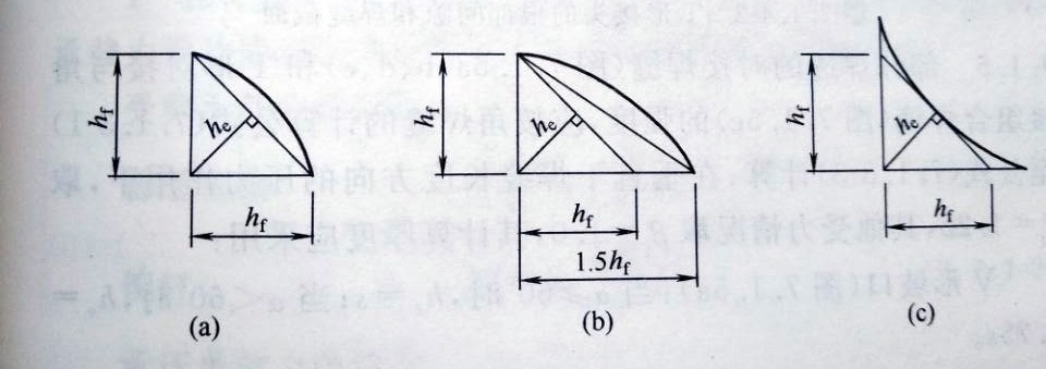 U形、J形坡口(圖3d、e):he=s。