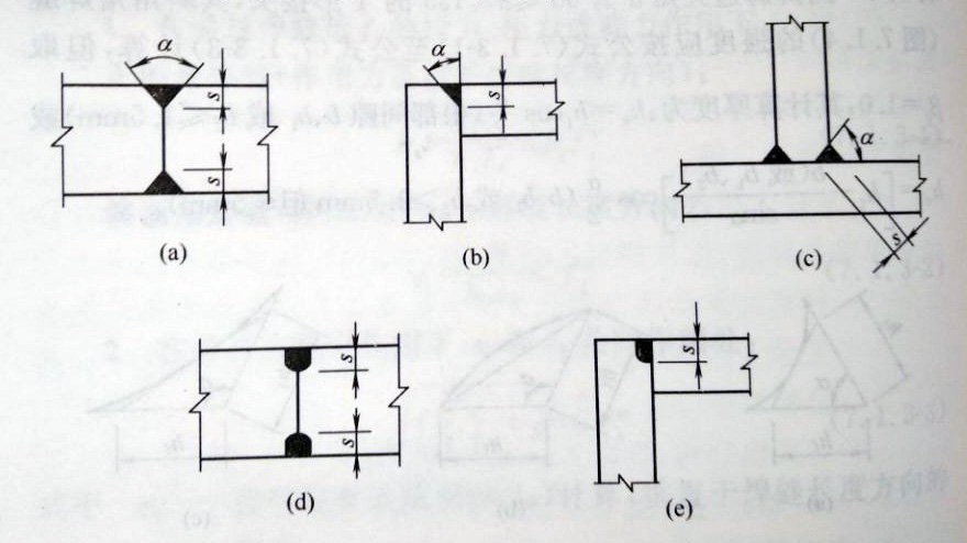 五、部分焊透的對接焊縫(圖3a、b、c、d、e)和T形對接與角接組合焊縫(圖3c)的強(qiáng)度,應(yīng)按角焊縫的計(jì)算公式3至公式5計(jì)算,在垂直于焊縫長度方向的壓力作用下,取βf=1.22,其他受力情況取βf=1.0,其計(jì)算厚度應(yīng)采用:
