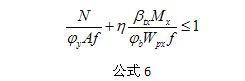 Φy、Φb、η和βtx應(yīng)按5.2.2條計(jì)算彎矩作用平面外穩(wěn)定的有關(guān)規(guī)定采用。