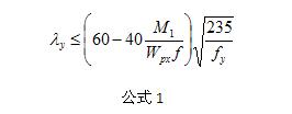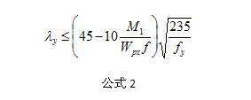 2、在構(gòu)件出現(xiàn)塑性鉸的截面處,必須設(shè)置側(cè)向支承。該支承點(diǎn)與其相鄰支承點(diǎn)間構(gòu)件的長(zhǎng)細(xì)比λy應(yīng)符合下列要求: