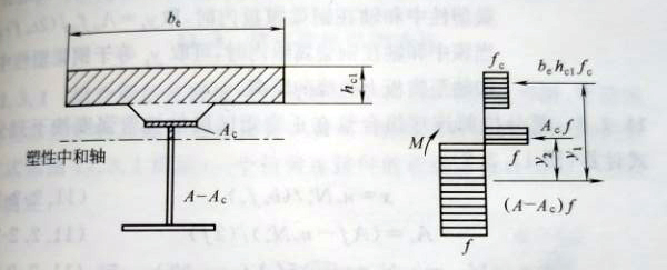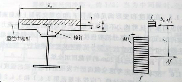 圖11.2.1-1塑性中和軸在混凝土翼板內(nèi)時(shí)的組合梁截面及應(yīng)力圖形