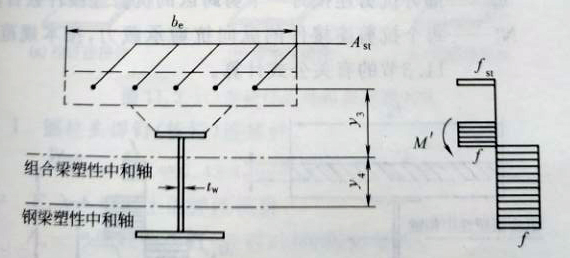 圖11.2.1-3負(fù)彎矩作用時(shí)組合梁截面及應(yīng)力圖形