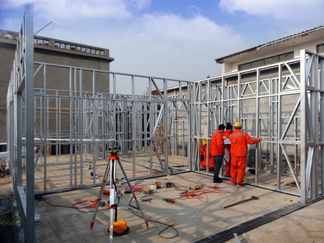 輕鋼別墅-欒城項(xiàng)目輕鋼龍骨主體組裝現(xiàn)場(chǎng)