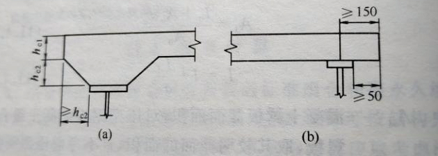 11.5.2組合梁邊梁混凝土翼板的構(gòu)造應(yīng)滿足圖11.5.2的要求。有板托時(shí),伸出長度不宣小于ha;無板托時(shí),應(yīng)同時(shí)滿足仲出鋼梁中心線不小于150mm、伸出鋼梁翼緣邊不小于50mm的要求。