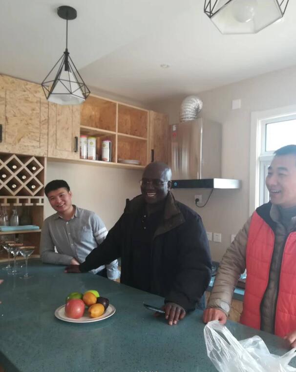 走進(jìn)別墅,坐在吧臺(tái)前,外國友人與設(shè)計(jì)部人員溝通了輕鋼別墅的相關(guān)事宜。 對輕鋼別墅的環(huán)境,結(jié)構(gòu)設(shè)計(jì)、外觀等都非常贊賞。并期望埃菲爾輕鋼別墅能推廣到國外去。埃菲爾工作人員向外國友人表示感謝:好的產(chǎn)品,定能走向世界。