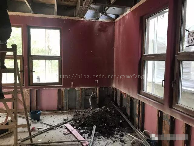 被拆掉維護(hù)系統(tǒng)的墻體龍骨