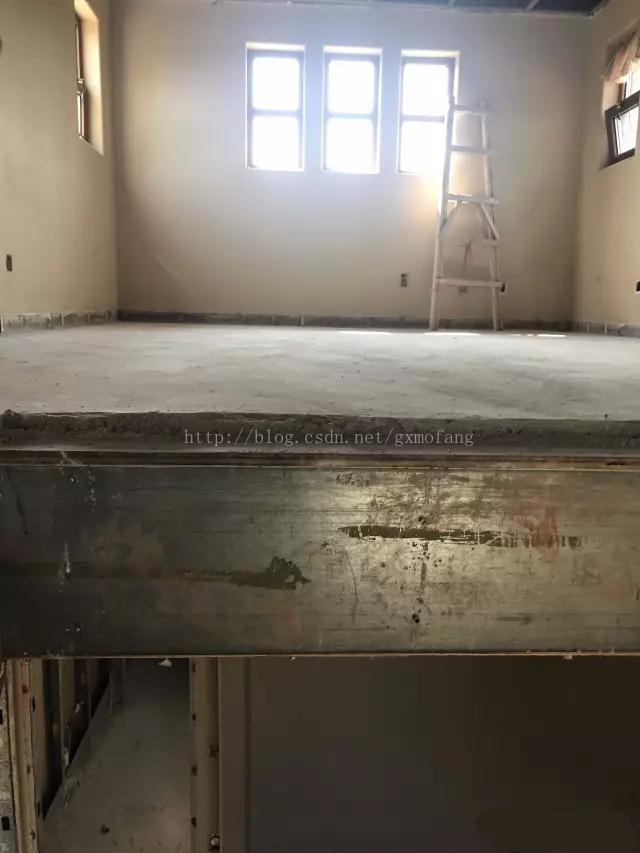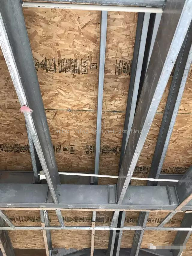 該別墅的房主要重新裝修,屋內(nèi)除了輕鋼結(jié)構(gòu)體系以外的所有附屬系統(tǒng)已經(jīng)全部拆除。拆掉吊頂龍骨的樓板桁架裸露在外,可見沒有一絲銹跡,經(jīng)過15年的時(shí)間質(zhì)量沒有發(fā)生任何改變。