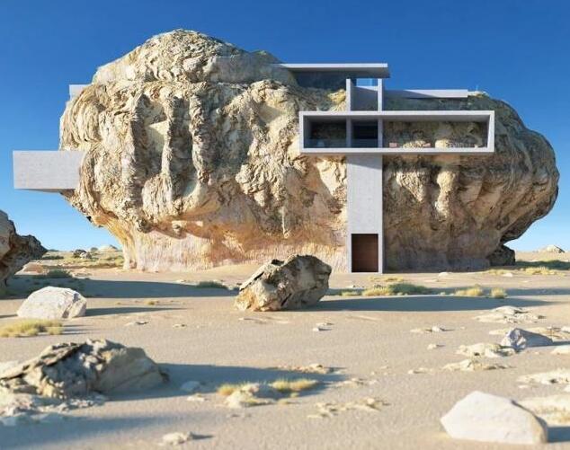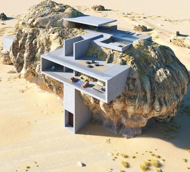 “巖石中的房子”設計靈感來自沙特阿拉伯馬丹薩利赫城巖壁上的墓室。這位在上海的外籍建筑師Amey Kandalgaonkar闡釋說:“考慮到沙特阿拉伯馬丹薩利赫城墳墓遺址在巖石上的復雜性,用一種更簡潔的平面和立體以獲得視覺上的平衡是必要的。我著手在3D軟件里創(chuàng)建巖石的模型,這是一個雕刻的過程。后來當將房子嵌入巖石中時,我努力使它在水平視角的效果最小化,只有在鳥瞰時,干預的真實程度才得以顯現(xiàn)。”小編我非常欣賞這樣的建筑設計,真可謂堅固、舒適、奇特引人!