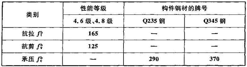 表4.2.5 C級(jí)普通螺栓連接的強(qiáng)度設(shè)計(jì)值(N/mm2)