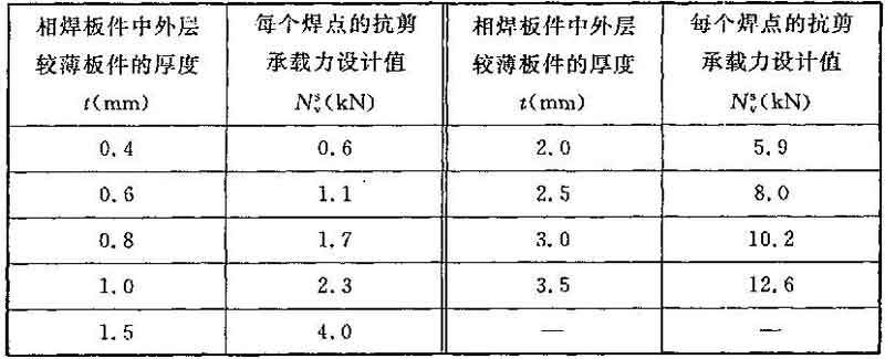 表4.2.6 電阻點(diǎn)焊的抗剪承載力設(shè)計(jì)值