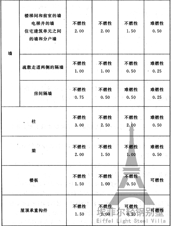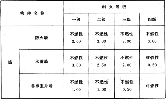 表5.1.2 不同耐火等級建筑相應構件的燃燒性能和耐火極限(h)