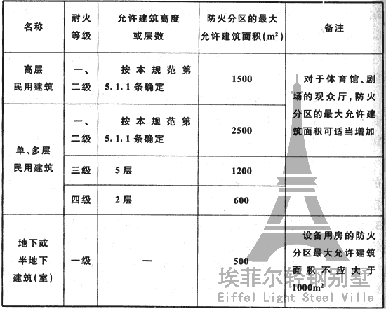 表5.3.1 不同耐火等級建筑的允許建筑高度或層數(shù)、防火分區(qū)最大允許建筑面積