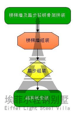 3.輕鋼別墅樓梯施工流程圖如下: