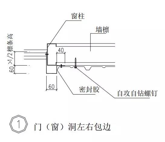 查看詳情一、窗洞立面 二、窗洞左右包邊 三、窗洞上下包邊 四、內(nèi)隔墻窗洞上下包邊 五、窗左、右口連接大樣 六、窗上、下口連接大樣 七、洞口角泛水件做法