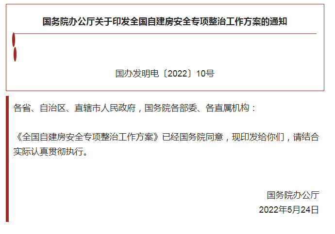 查看詳情國(guó)務(wù)院辦公廳關(guān)于印發(fā)全國(guó)自建房安全專項(xiàng)整治的通知